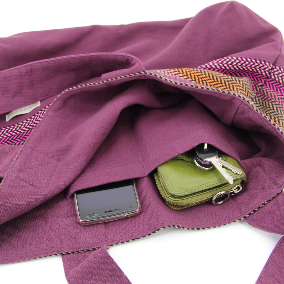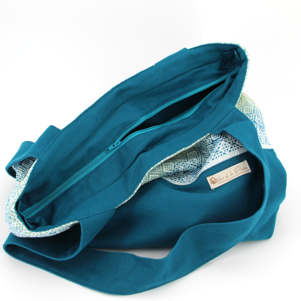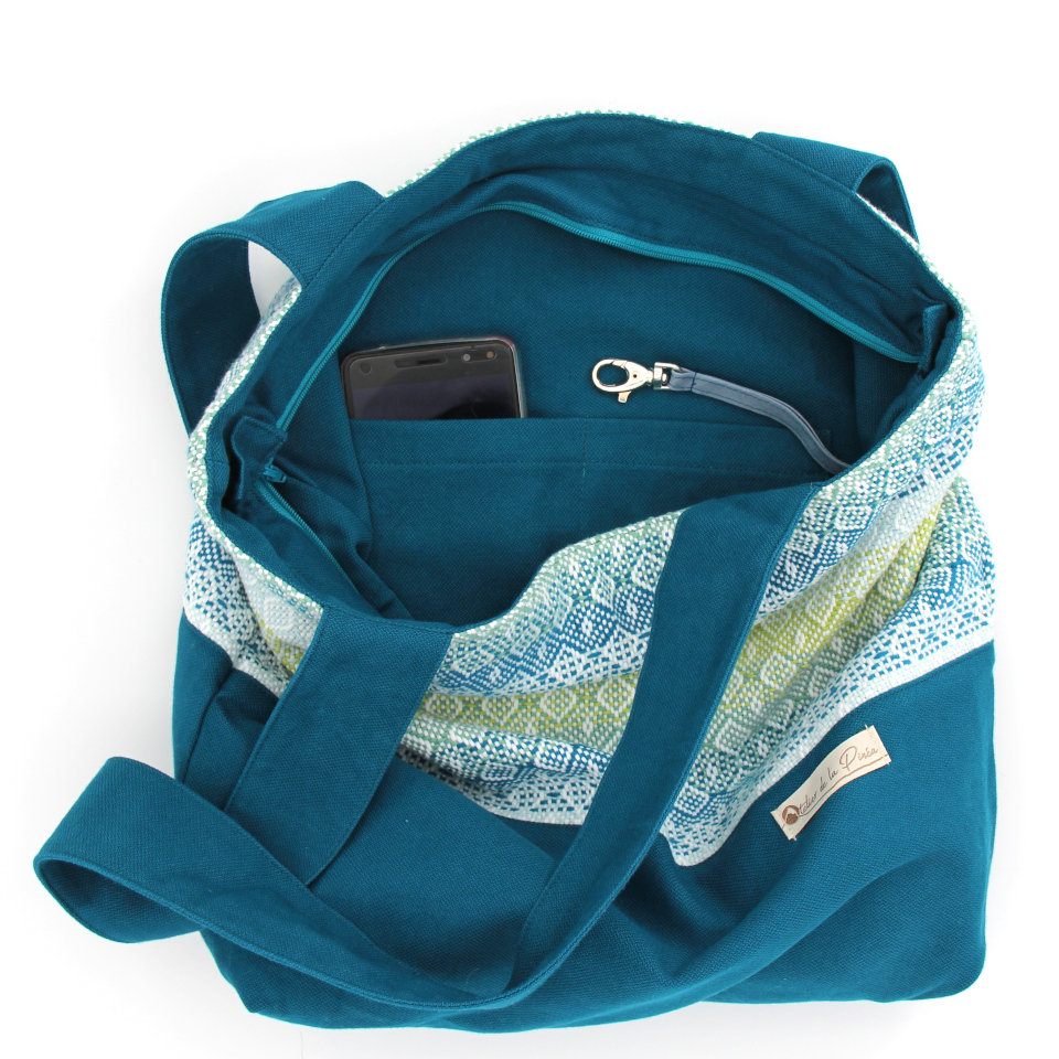 A l’intérieur du sac, une petite poche ouverte.