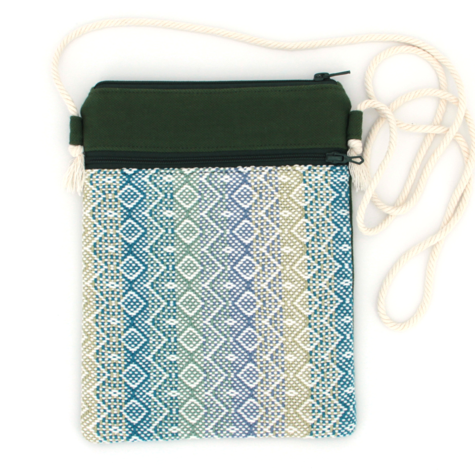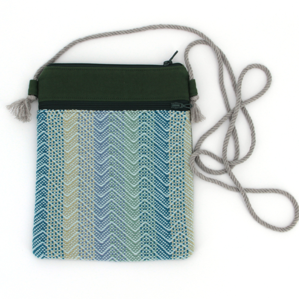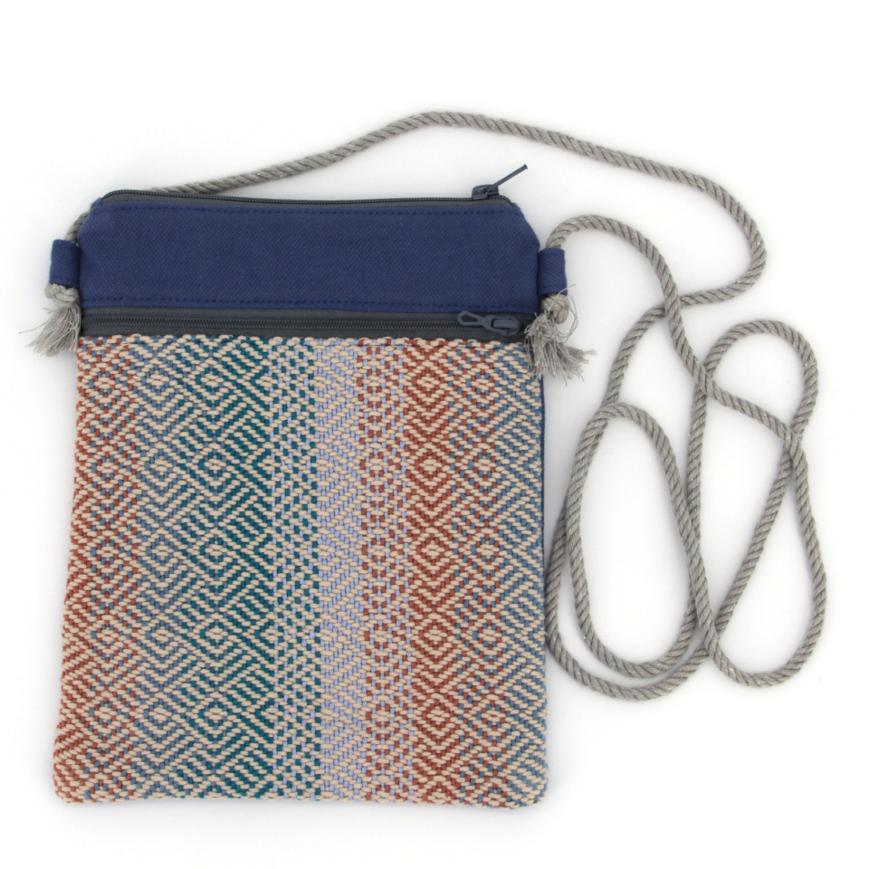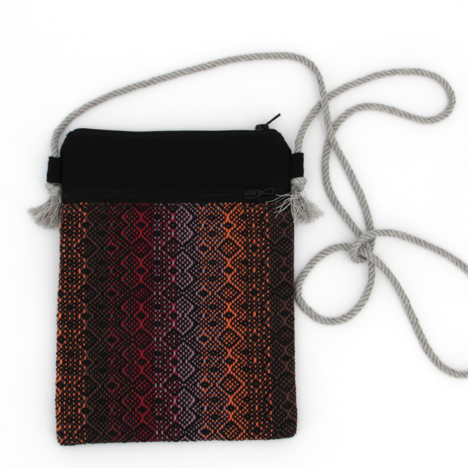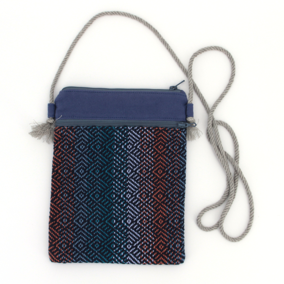 Chaque pochette dispose de deux poches zippées. Intérieur entièrement doublé. La longueur de la cordelette peut être ajustée en déplaçant les nœuds aux extrémités.