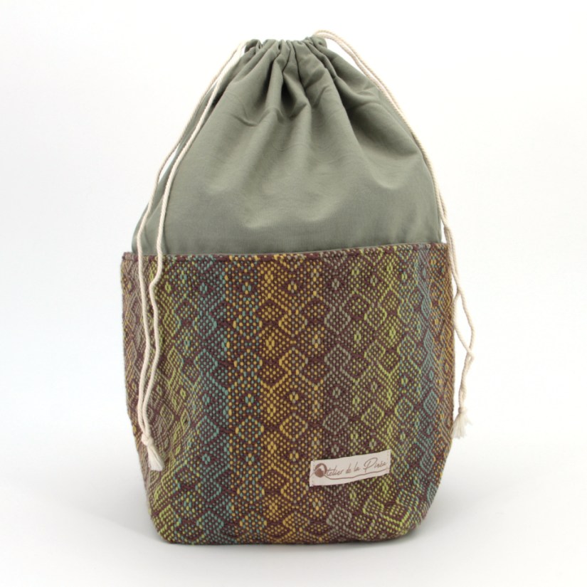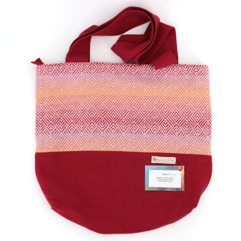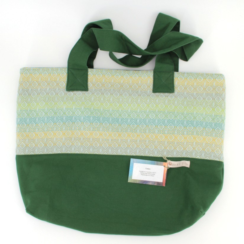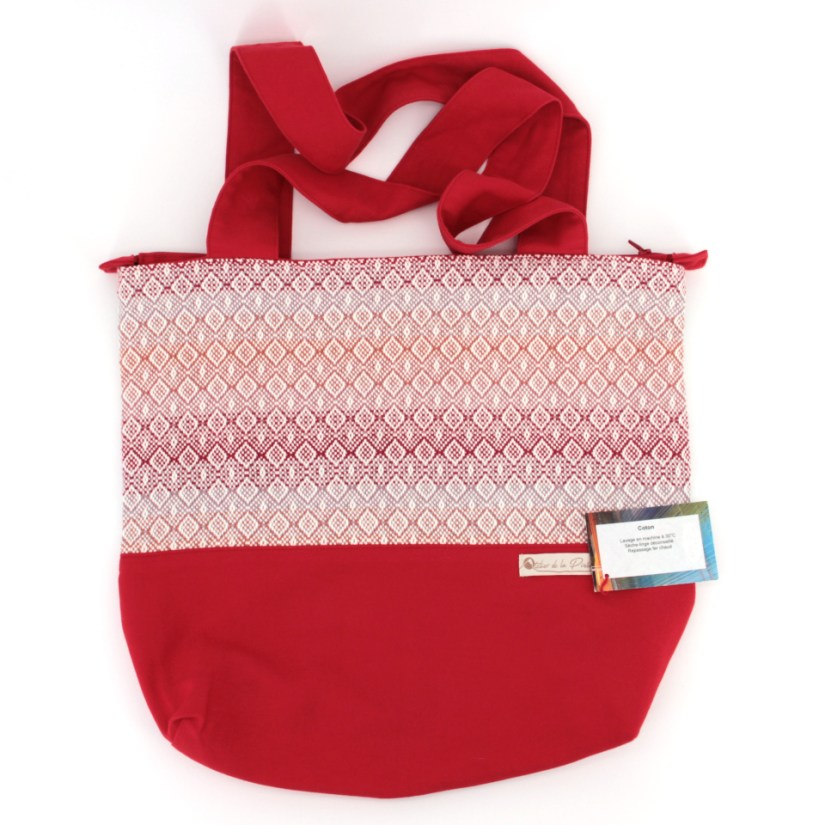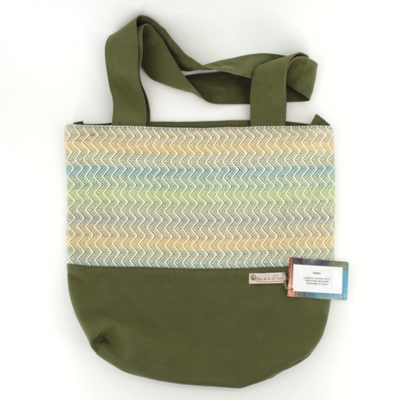 Sac cabas avec rehausse. Peut supporter une charge relativement lourde. C’est le compagnon idéal pour faire le marché!