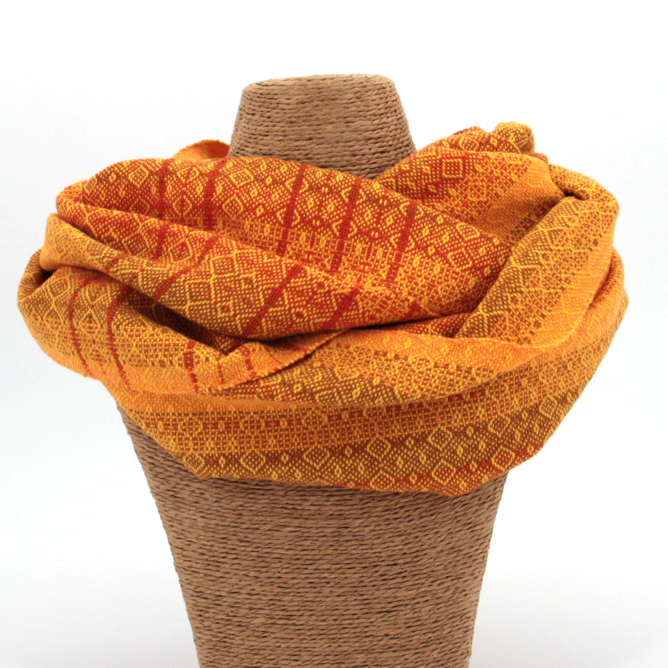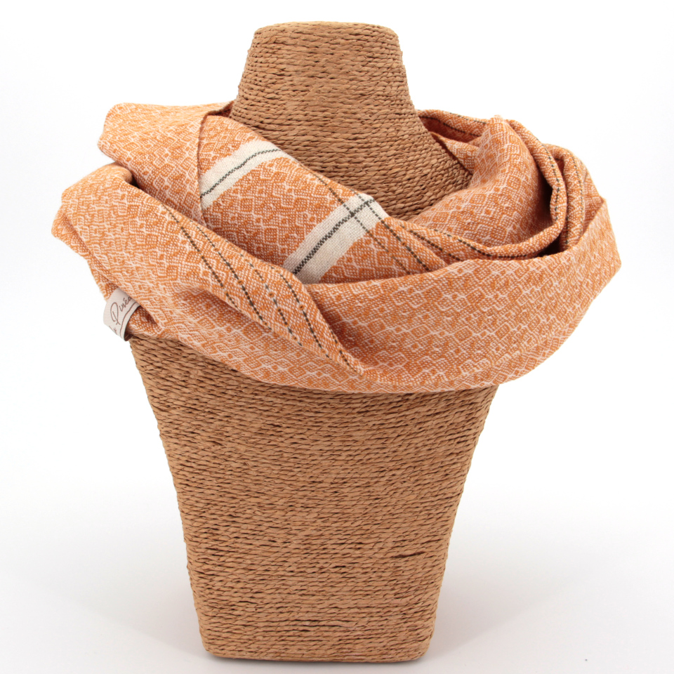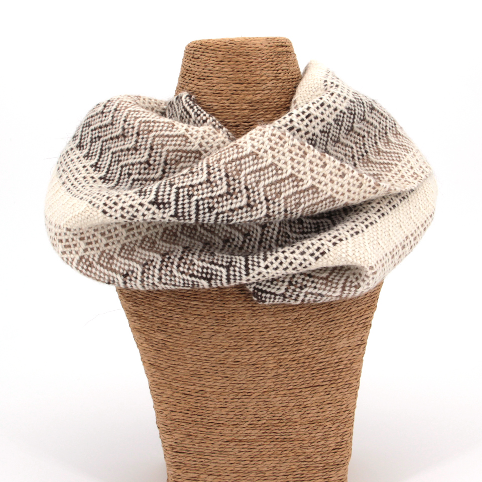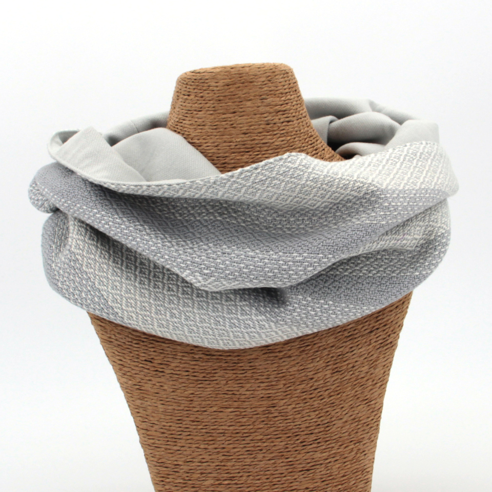 Les matières des écharpes et tours de cou varient entre laine, coton, alpaga, mohair, soie… et parfois se mélangent au gré de mes envies et de mon inspiration!